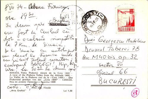 - Nume actual subiect: Sinaia. Hotel Cota 1400 și Valea Prahovei
