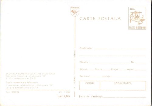 SCOARȚĂ ROMÂNEASCĂ DIN MUNTENIA. EXPOZIȚIA FILATELICĂ ”NAȚIONALA 78”. A 20-A ANIVERSARE A A.P.R.
