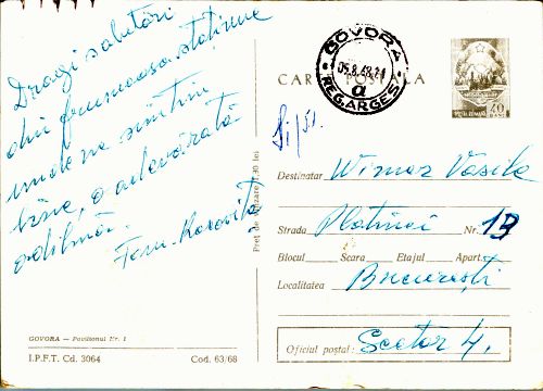 • Data expedierii: 05 august 1968