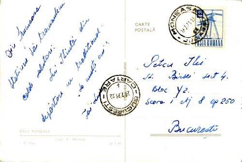 În plan central, pensiunea Mayumi (fostă Narcisa). În prim plan, pajiște cu flori. În fundal, deal și pădure.