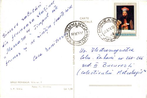 În plan central, pensiunea Mayumi (fostă Narcisa). În prim plan, pajiște cu flori. În fundal, deal și pădure.