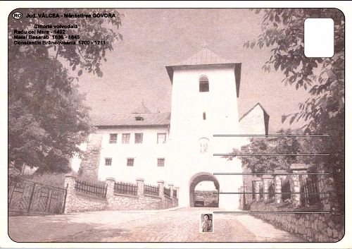 • Observații: Pe verso-ul cărții poștale este imprimată monocrom, în nuanțe pale, o imagine a intrării în Mănăstirea Govora. Mănăstirea Govora este o mănăstire de maici cu hramul Adormirea Maicii Domnului, una dintre cele mai vechi mănăstiri din Țara Românească, precum și un monument arhitectonic medieval de o rară frumusețe. (sursa: https://ro.wikipedia.org/wiki/M%C4%83n%C4%83stirea_Govora)