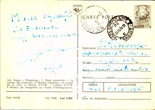 CÎMPULUNG MUSCEL. JUD. ARGEȘ - CÎMPULUNG: 1. CASA PIONIERILOR. 2. MUZEUL ORĂȘENESC. 3. OFICIUL P.T.T.R. 4. MUZEUL DE ETNOGRAFIE
