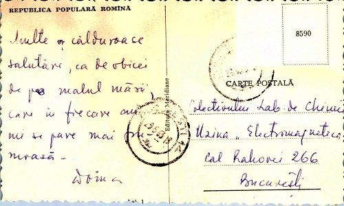 • Descriere: În plan central, hotelurile Aurora, Meridian, Doina din Mamaia și plaja plină de vilegiaturiști. În prim plan apa mării și un val.