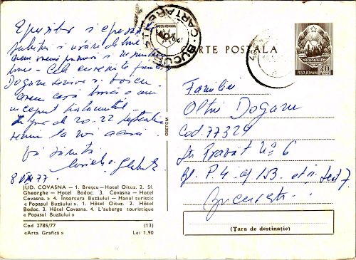 • Data expedierii: 10 septembrie 1977