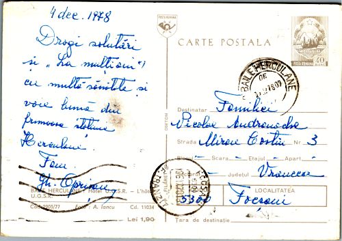 BĂILE HERCULANE - HOTEL U.G.S.R.