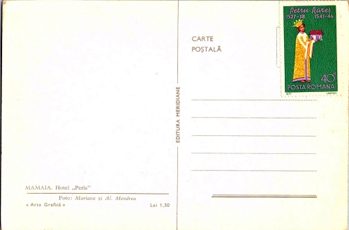 • Descriere: În plan central, hotelul Perla din Mamaia și un restaurant. În prim plan, un bazin cu apa reflectând hotelul.