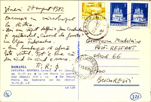 • Descriere: În planul apropiat se observă ruinele cetății Histria, zidurile și coloanele. În depărtare se văd aceleași ziduri și ruine ale cetății care delimitează spațiile locuințelor.
