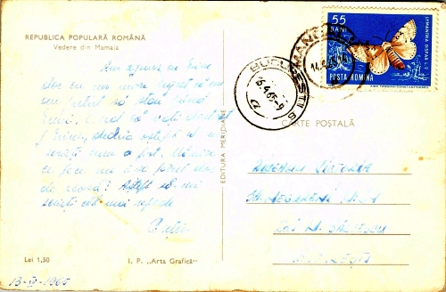 În plan central, hotelurile Flora, Doina, Meridian, Aurora, Perla din Mamaia, văzute de sus. În stânga, Marea Neagră și plaja. În dreapta, Lacul Siutghiol. În depărtare, Lacul Tăbăcăriei.