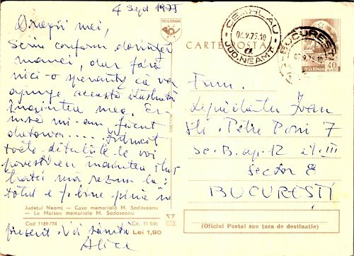 • Data expedierii: 6 septembrie 1975