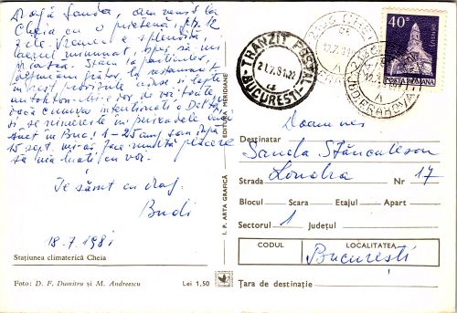În prima imagine, în medalion, este redat hotelul Cheia, actualul Complex Hotelier Cheia, o clădire în forma literei A, specifică stațiunilor montane, în fața căreia se află un camping cu căsuțe și mai multe autovehicule personale, model Lada și Dacia 1100.