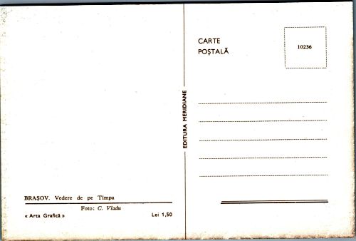 Vedere de pe Tâmpa asupra orașului Brașov. Pot fi observate clădirile orașului, trama stradală și vegetația înconjurătoare. În partea stângă a fotografiei este Piața Sfatului, în mijlocul căreia este evidențiată Casa Sfatului.