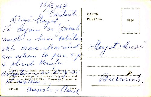 Scrisă la 13 septembrie 1967, dar neexpediată.