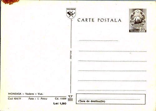 În plan central, pensiunea Mayumi (fostă Narcisa). În prim plan, pajiște cu flori. În fundal, deal și pădure.