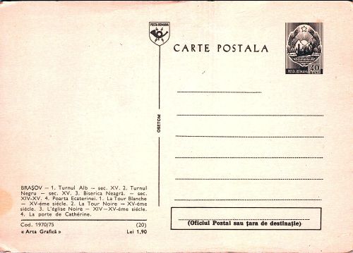 BRAȘOV - 1. TURNUL ALB - SEC. XV. 2. TURNUL NEGRU - SEC. XV. 3. BISERICA NEAGRĂ - SEC. XIV-XV. 4. POATA ECATERINEI