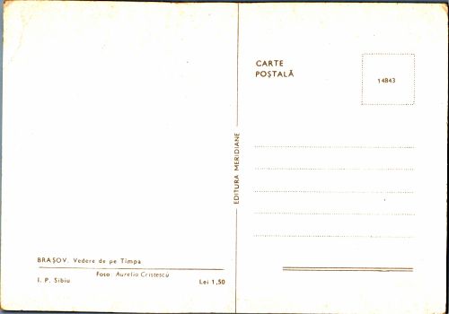 • Descriere: Vedere panormanică cu orașul Brașov. În partea dreaptă a imaginii se află două persoane, pe o stâncă, care admiră orașul văzut de la înălțime.