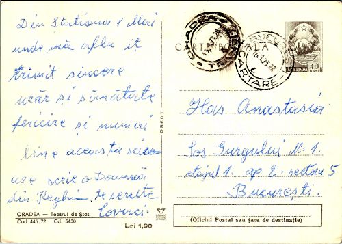 • Descriptori: Oradea; Bihor; Teatrul de Stat; teatru; Teatrul Szigligeti; Teatrul Regina Maria; trecător; piață; bust; automobil; Szigligeti Ede; rond de flori;