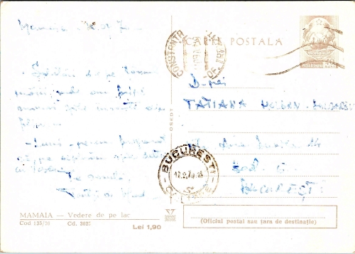 • Descriere: În plan central, o barcă cu pânze plină cu vilegiaturiști, pe Lacul Siutghiol din Mamaia. În plan secund, malul lacului și două hoteluri.