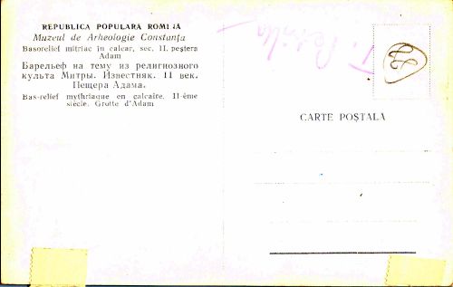 • Descriptori: Zeul Mithras; altar; basorelief; calcar; peșteră; Peștera La Adam; Rezervația naturală Gura Dobrogei;