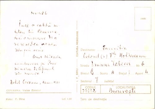 Pe spațiul verde din imagine, se observă turiști care se plimbă și mașini parcate în proximitatea actualului spital de cardiologie. În partea dreaptă se poate observa și spitalul, înconjuratde brazi.