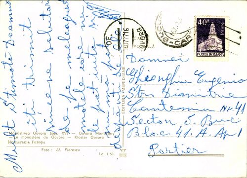 • Descriere: Mănăstirea Govora, vedere în prim-plan a bisericii. În planul secundar se pot observa chilii, iar în plan îndepărtat, în spatele bisericii, este un turn clopotniță. La stânga este o fântână.