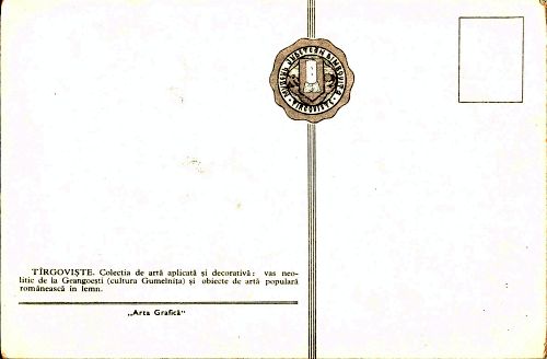 TÎRGOVIȘTE: COLECȚIA DE ARTĂAPLICATĂ ȘI DECORATIVĂ: VAS NEOLITIC DE LA GEANGOEȘTI (CULTURA GUMELNIȚA) ȘI OBIECTE DE ARTĂ POPULARĂ ROMÂNEASCĂ ÎN LEMN.