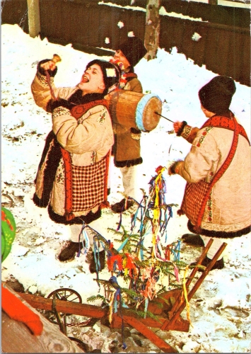 • Descriptori: felicitare; sărbătoare; tradiție; iarnă; colindător; grup; costum popular; brad; buhai; copil; Plugușor;