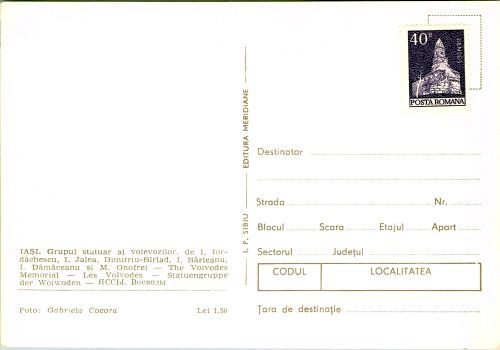 IAȘI. GRUPUL STATUAR AL VOIEVOZILOR DE I. IORDĂCHESCU, I. JALEA, DIMITRIU-BÎRLAD, I. BÂRLEANU, I. DĂMĂCEANU ȘI M. ONOFREI