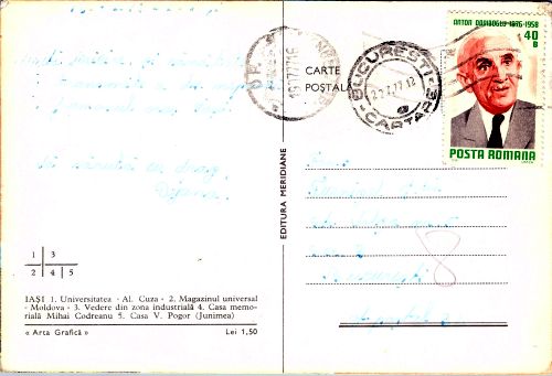 IAȘI. 1. UNIVERSITATEA „AL. CUZA” 2. MAGAZINUL UNIVERSAL „MOLDOVA” 3. VEDERE DIN ZONA INDUSTRIALĂ 4. CASA MEMORIALĂ MIHAI CODREANU 5 CASA V. POGOR (JUNIMEA)