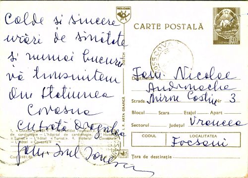 1. OSTAȘUL ROMÂN; 2. SPITALUL DE CARDIOLOGIE; 3. HOTELUL TURIST; 4. HOTELUL COVASNA