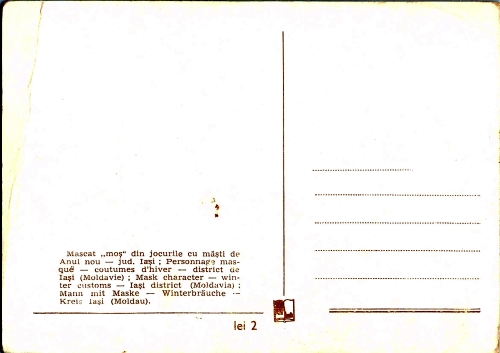 • Nume actual subiect: Mascat "moș" din jocurile cu măști de Anul Nou - jud. Iași