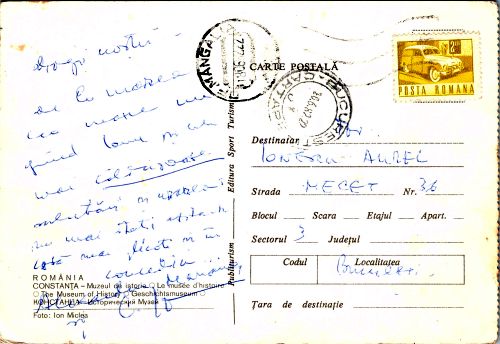 • Descriere: În centru, Muzeul de Istorie Naţională şi Arheologie din Piața Ovidiu, Constanța. În dreapta, statuia lui Ovidiu, iar în prim plan, o parcare plină de automobile.