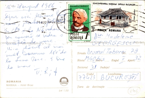 • Data expedierii: 27 august 1986