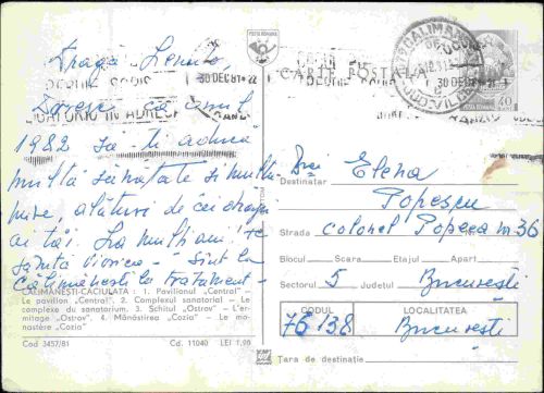 • Data expedierii: 30 decembrie 1981