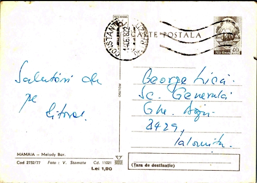 • Descriere: În plan central, barul Melody din Mamaia (actualul Grand Ballroom Melody), în forma lui originară. În prim plan, aleea falezei.