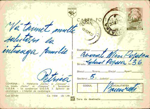 • Data expedierii: 30 noiembrie 1981