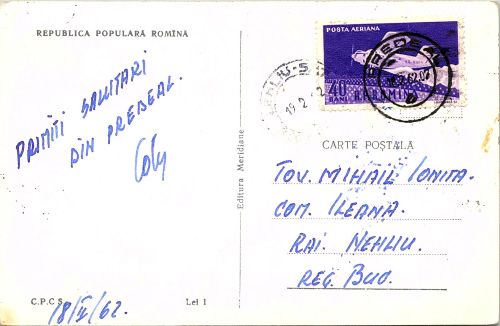 Casă de odihnă din Timișu de Jos aflată la poalele muntilor Piatra Mare. Clădirea cu 3 etaje este situată peste râu (probabil Timiș) și are în apropiere un pod ce leaga drumul la drumul principal.