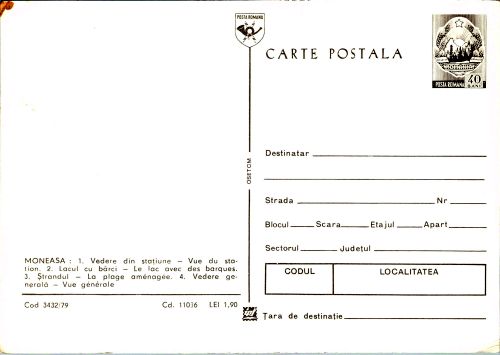 MONEASA: 1. VEDERE DIN STAȚIUNE. 2. LACUL CU BĂRCI. 3. ȘTRANDUL. 4. VEDERE GENERALĂ